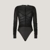 This sleeveless knit top features a bateau neckline with see-through inserts across the décolleté. Its fluid fit and hip-skimming length make it a versatile piece—perfect layered under a blazer or worn on its own during summer evenings. At the back neckline, a twisted plaque evokes the Maison iconic orchid and is adorned with a delicate mini pearl.