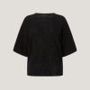 Long-sleeved blouse that reinterprets femininity through a wrap-style silhouette, embellished with a jeweled embroidery of multiform rhinestones along the crossover neckline. The gathered waist creates a graceful blouson effect, elegantly enhancing the figure. Its length at the high hip makes it perfect for both special occasions and refined everyday looks.