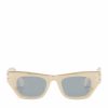 Cat-eye acetate sunglasses are a true statement of class and sophistication. The lightweight acetate frame gently hugs the face, accentuating the cat-eye style, while the front frame sparkles with rhinestones, capturing the sunlight in a charming glow. The temples feature Genny’s golden logo, synonymous with Italian luxury and quality. They’re the perfect accessory to elevate a chic and sophisticated look.