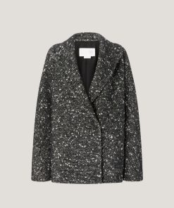 GENNY Women’s Ready-to-wear Oversized Double-breasted Caban With Sequin Embroidery | Black