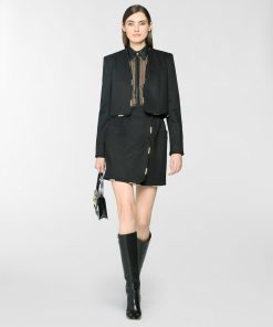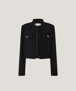 GENNY Women’s Ready-to-wear Short Cady Jacket With Maxi Pockets And Jeweled X Detail