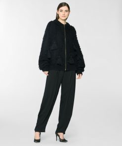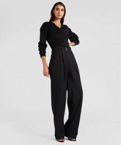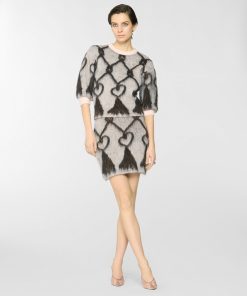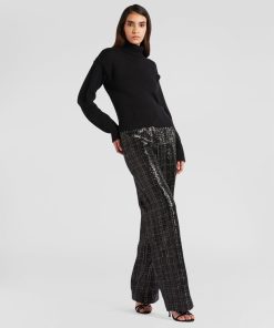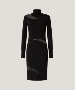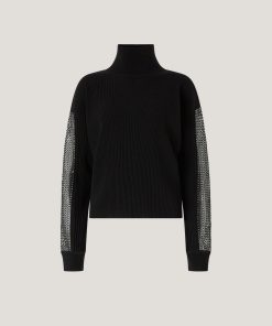 GENNY Women’s Ready-to-wear Virgin Wool Turtleneck With Mesh And Rhinestone Details | Black