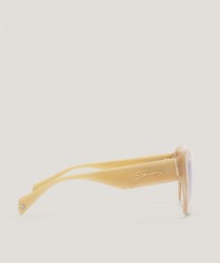 With a captivating beige frame, these sunglasses embody a minimalist and chic aesthetic. The square shape and brown gradient lenses make them perfect for a modern and versatile look. The Genny logo on the temples adds an iconic touch, creating an accessory that seamlessly combines elegance and functionality.