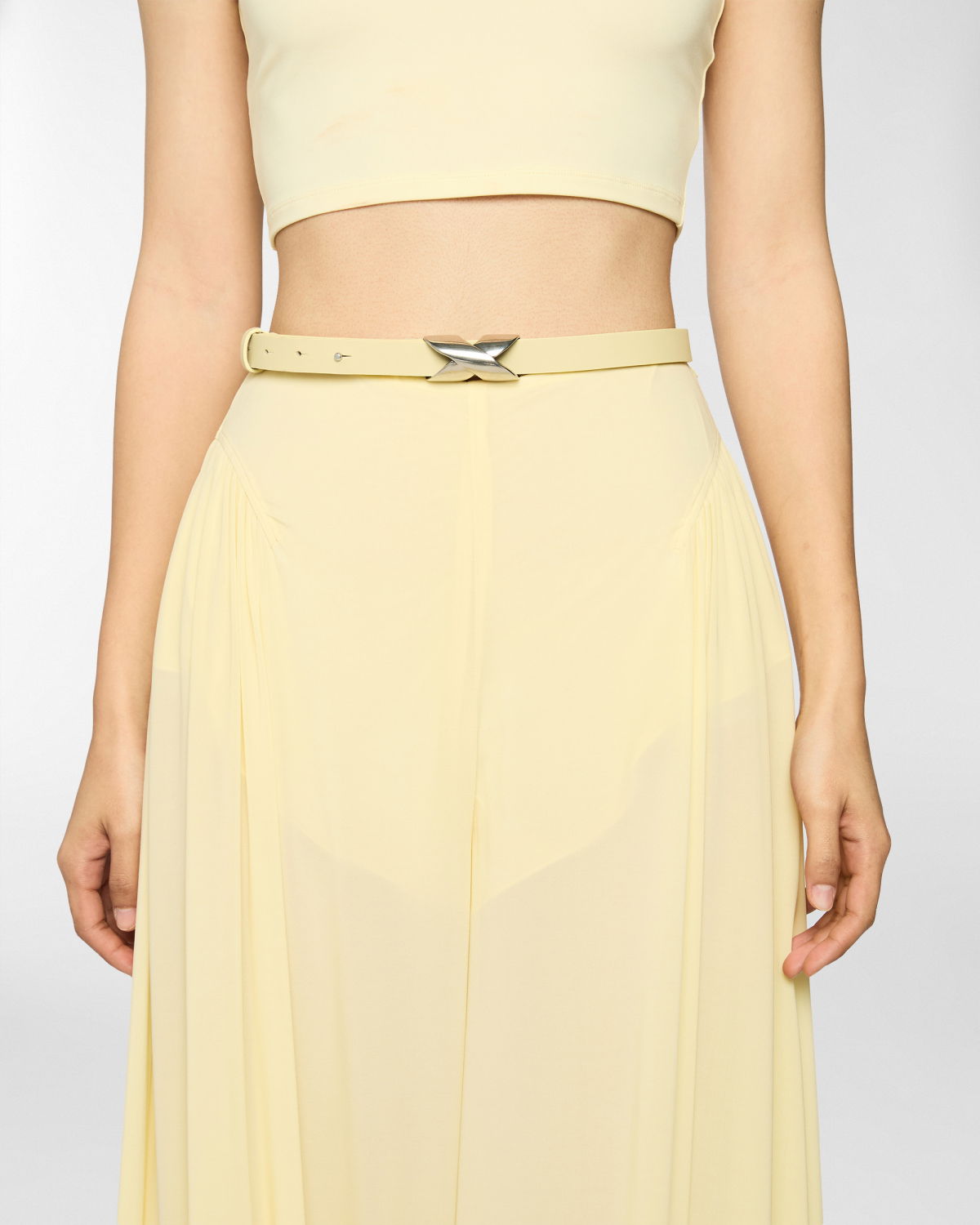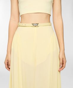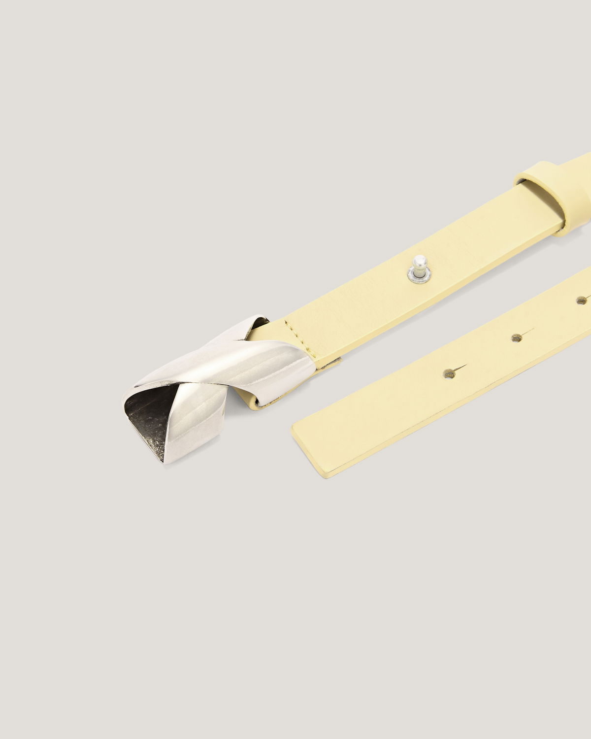 Slim belt, featuring a silver wave-shaped buckle. A modern and minimalist accessory, ideal for enhancing any outfit with understated elegance.