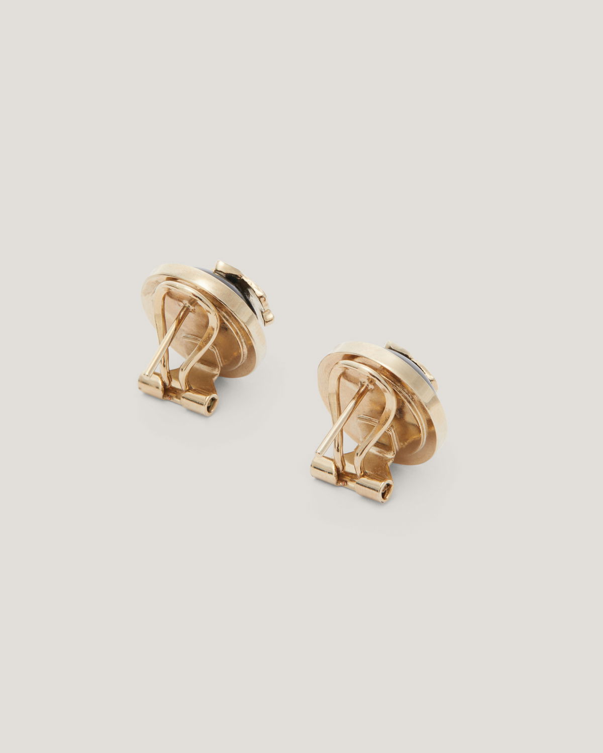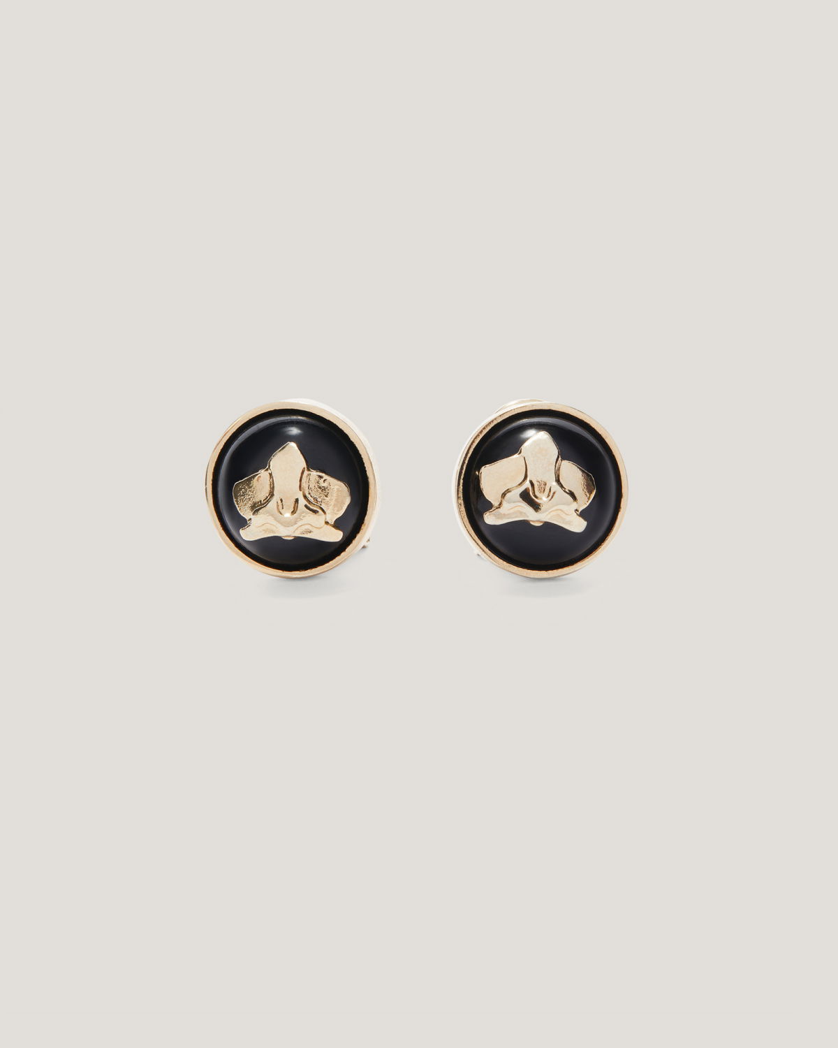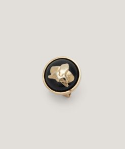 A blend of elegance and refinement, these clip-on earrings feature a sleek round base in black enamel, adorned with a delicate gold-tone orchid motif. The secure clip fastening ensures comfortable wear, making them the perfect accessory to elevate any outfit from day to evening.