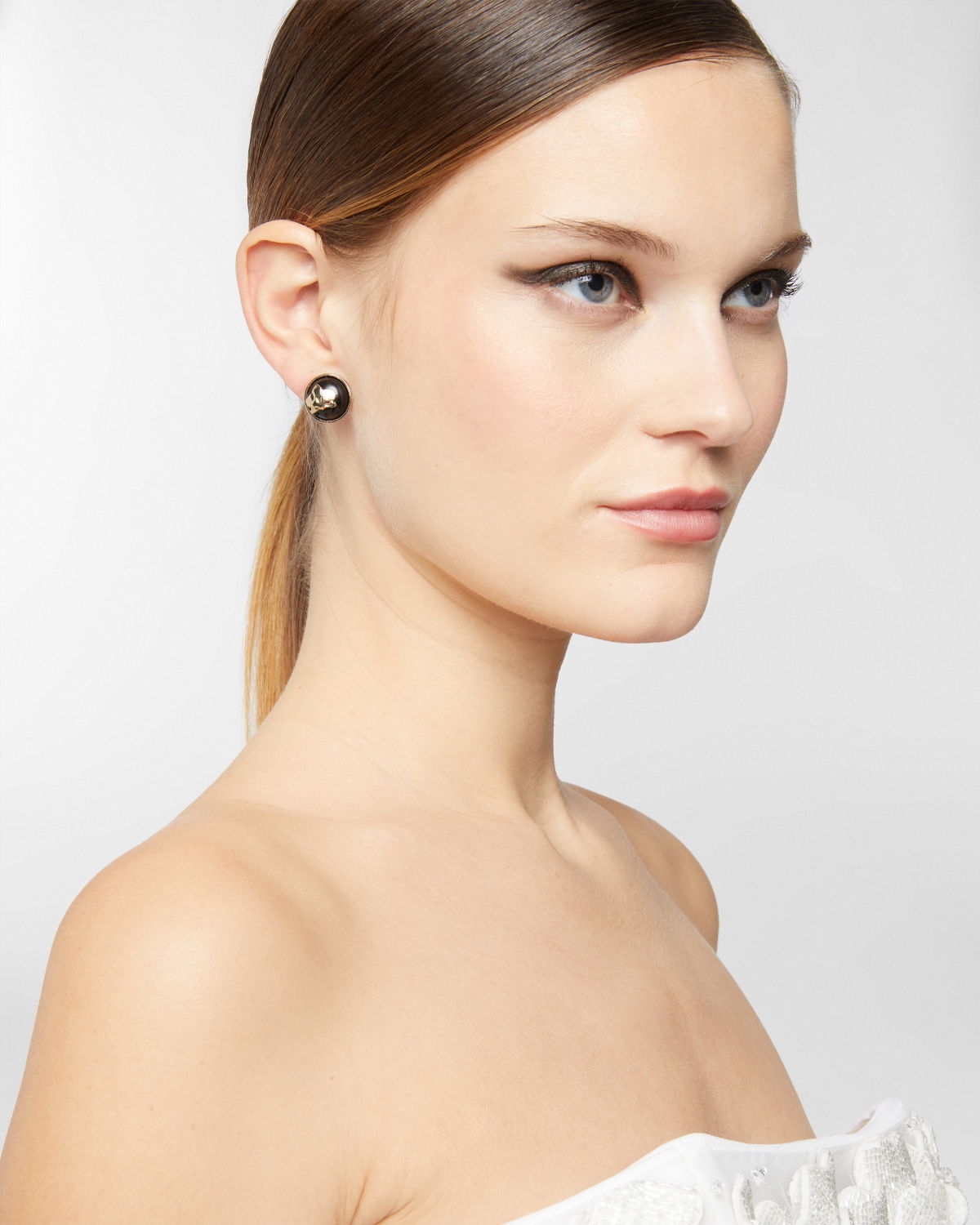 Composition: Gold-tone brass and white resin pearl.