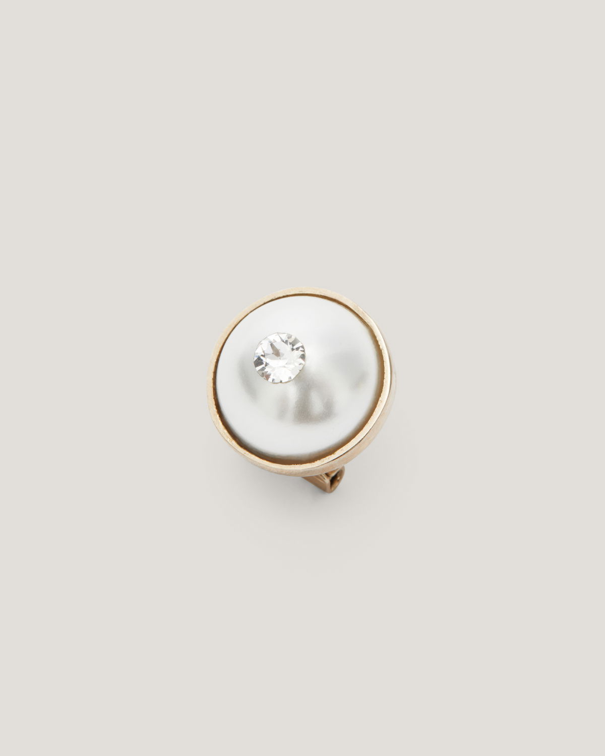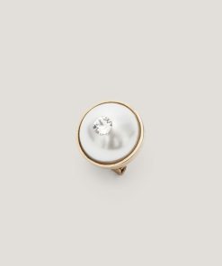 These refined gold-tone clip-on earrings, adorned with a central pearl and a sparkling crystal, embody the essence of timeless elegance. The clip-on closure ensures a comfortable fit, making them perfect for enhancing any outfit, from daytime chic to evening sophistication.