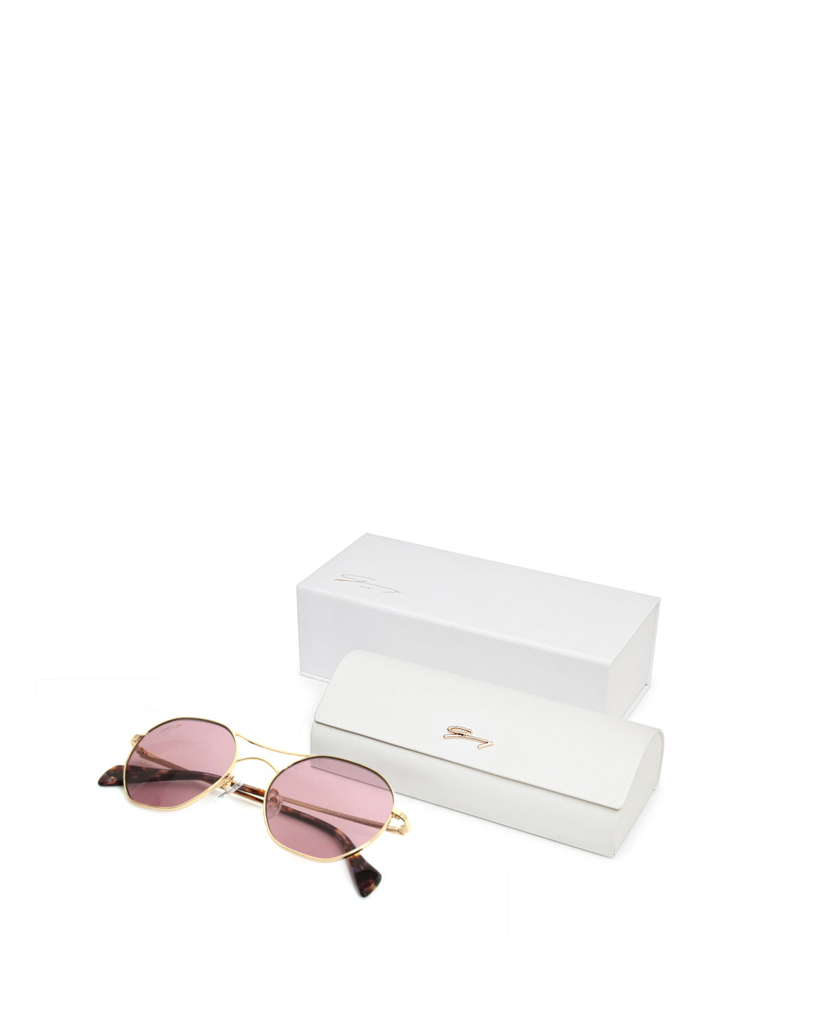 Genny’s sunglasses have been crafted in Italy and come in a chic gold hue with purple lens.
