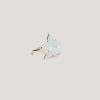 Gold-tone metal ring with a contemporary design, featuring a central pearl embellished with a sparkling rhinestone detail. The clean geometry and balance between minimal lines and decorative accents make this jewel a refined statement accessory, perfect to elevate both elegant and modern looks.