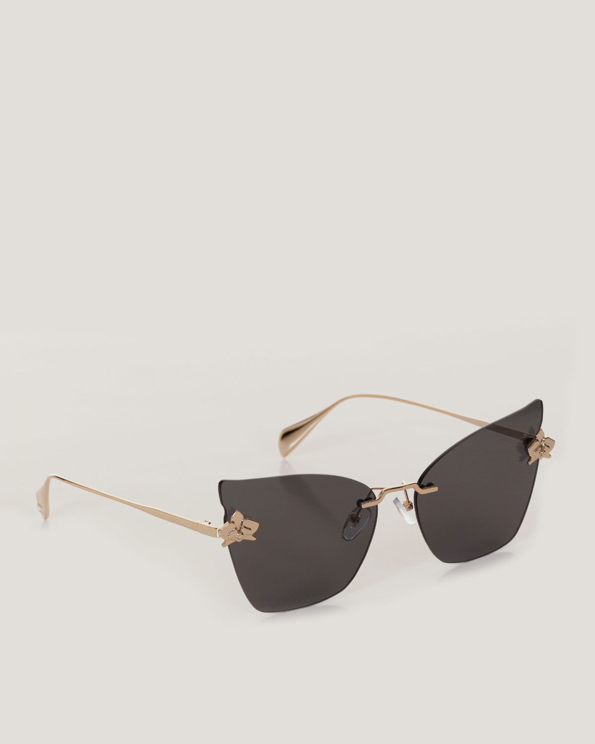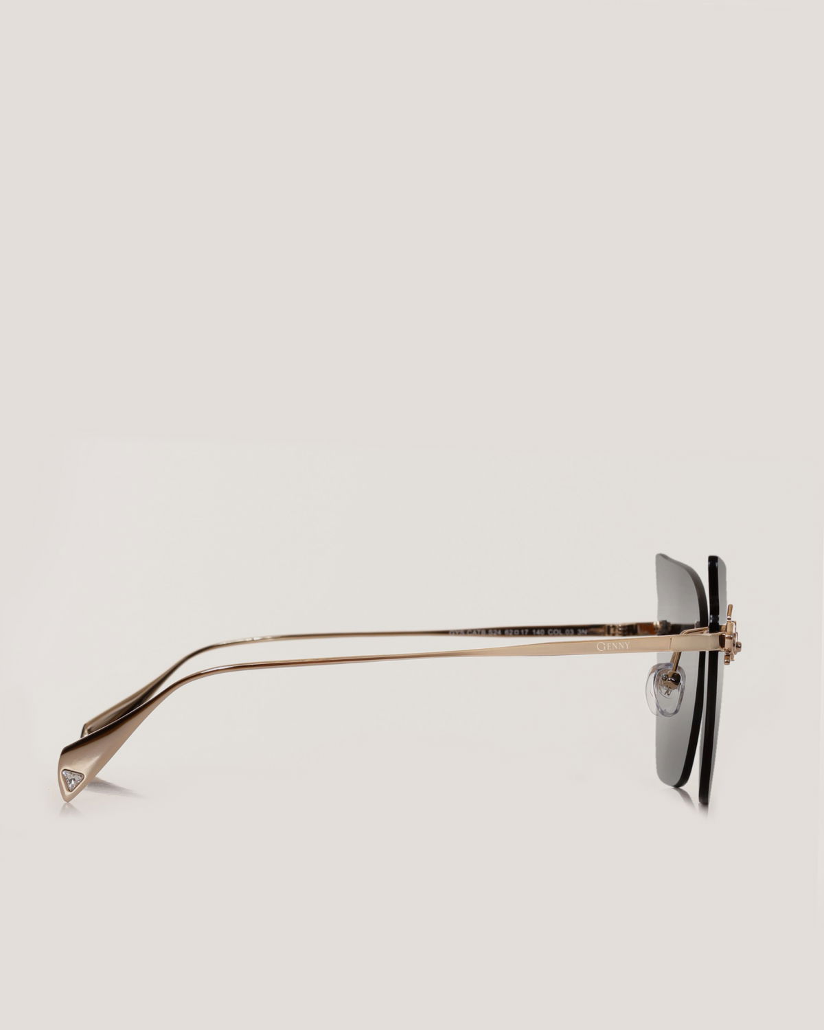 Genny sunglasses with a minimalist rose-gold metal frame and gradient lenses, ideal for a sophisticated and feminine look. The cat-eye design enhances elegance, while the iconic three-dimensional orchid symbol on the lenses adds a distinctive and glamorous touch. Perfect for elevating refined and luxurious outfits.