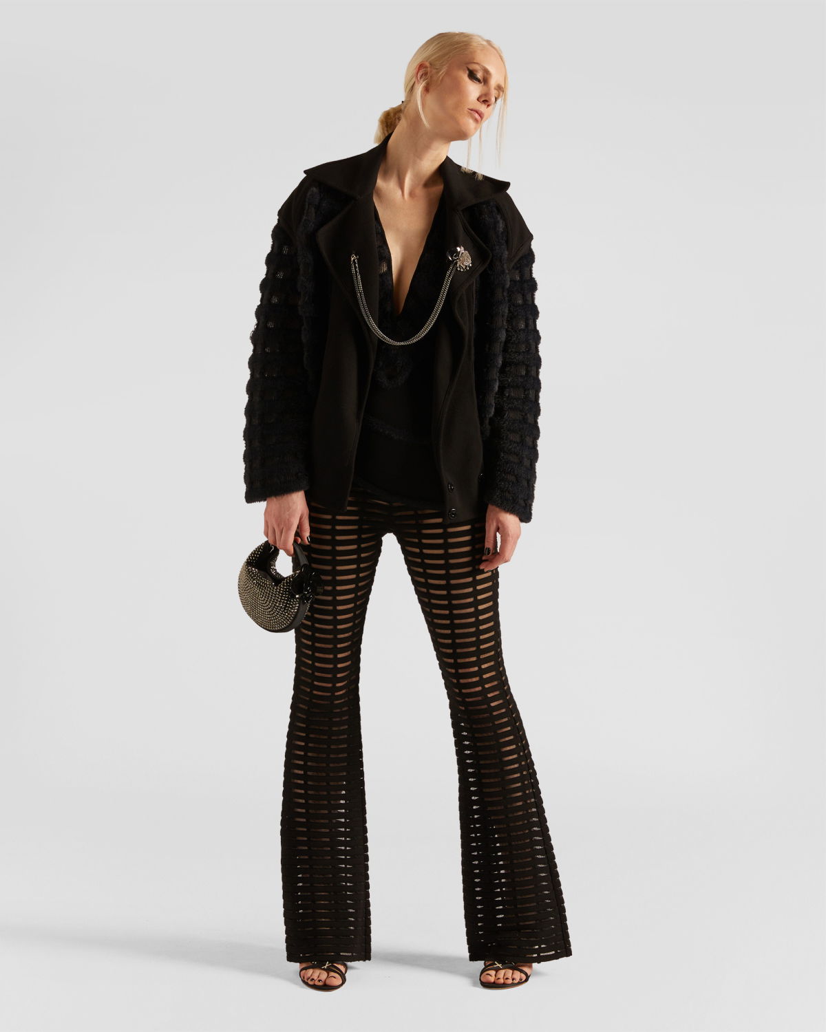 100% Made in Italy. Composition: 61%Polyester, 37%Viscose, 2%Elastane.