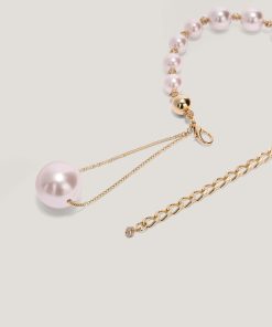 A timeless accessory, this belt features resin pearls and gold-tone metal details. Its delicate chain and central pearl charm add a touch of elegance and sophistication to any outfit.