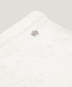 Tubular-trimmed hems with sequins add a luminous touch, while the intertwined plaque, adorned with a mini pearl, recalls the Maison’s iconic orchid—interpreted as a symbol of grace and feminine strength.