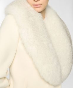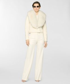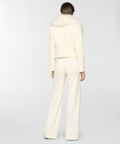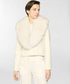 Fitted cropped jacket enriched with a wide lapel trimmed in fur, an elegant detail echoed on the cuffs. Crafted from a refined blend of virgin wool and cashmere, it combines comfort and sophistication with timeless appeal.
