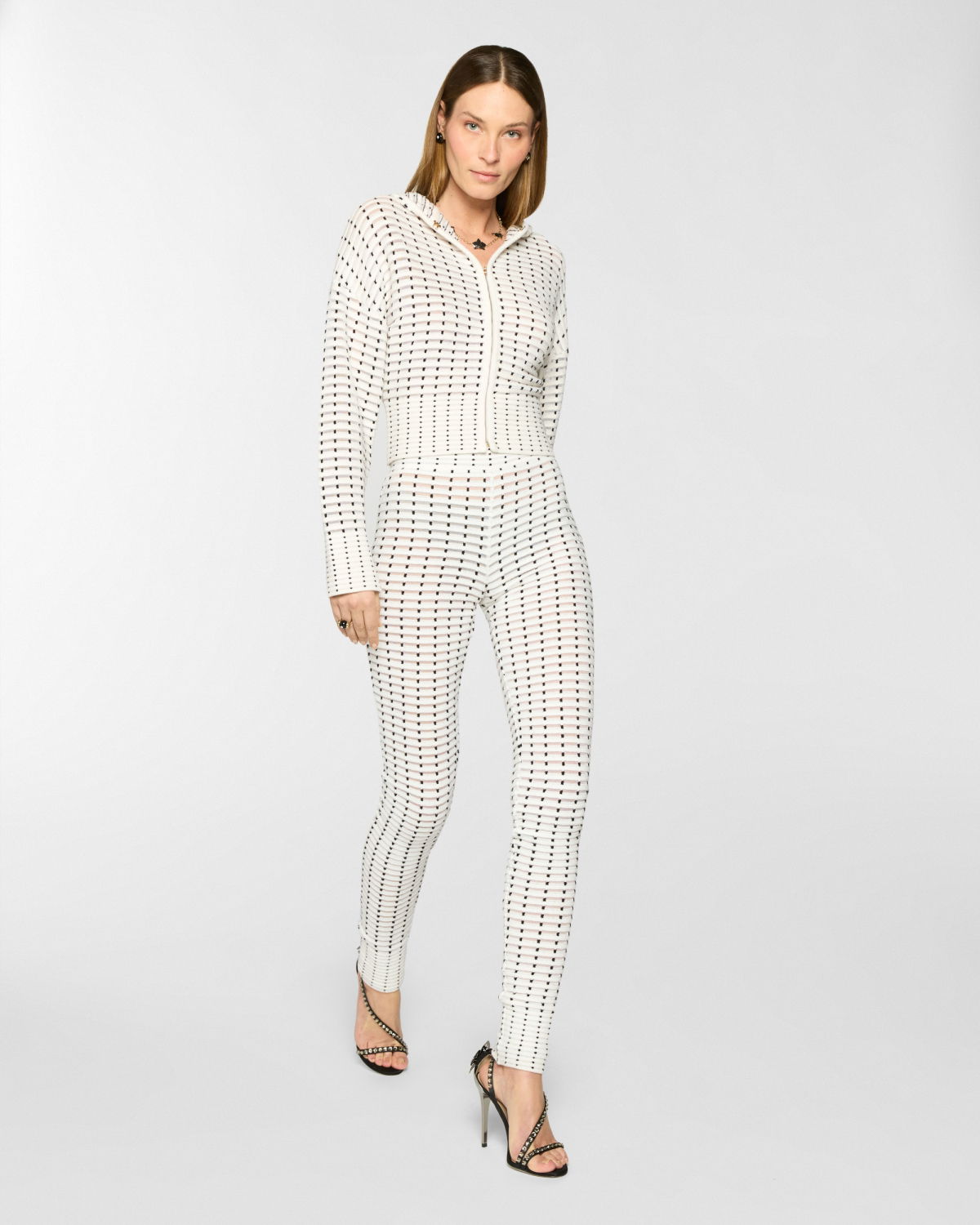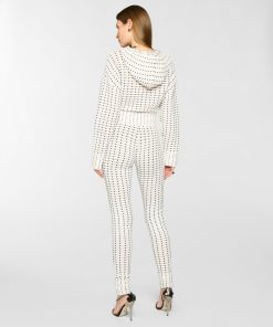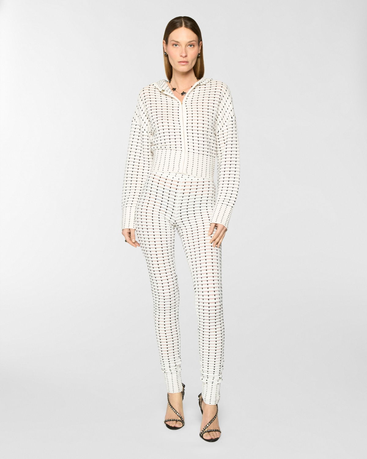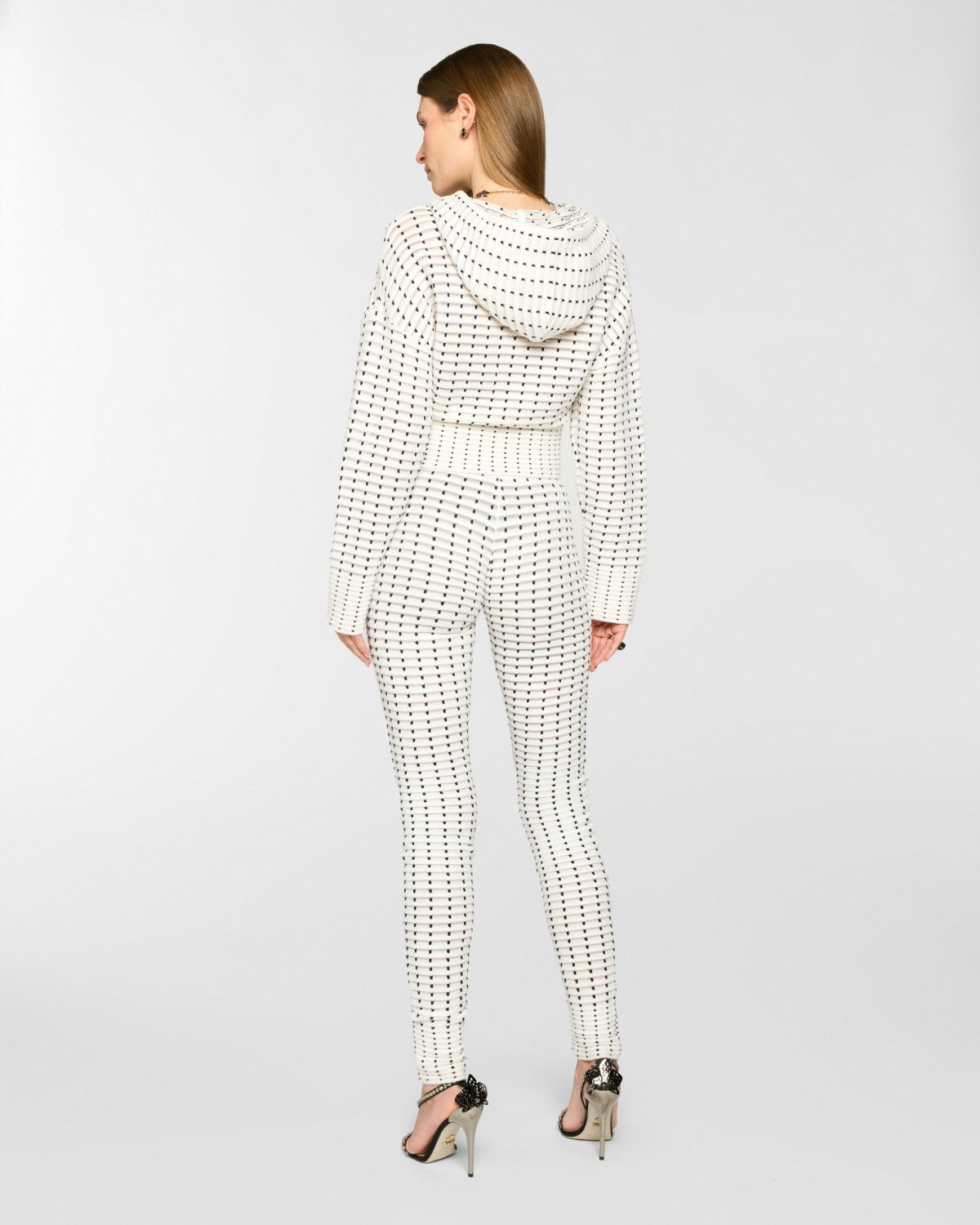 Crafted in knit with the brand iconic pattern, this bomber features a generous hood and a kiss-front closure with hidden hooks. The relaxed cut is balanced by a defined waist that enhances the silhouette. A comfortable yet refined piece, perfect for elevating even the most casual looks.