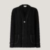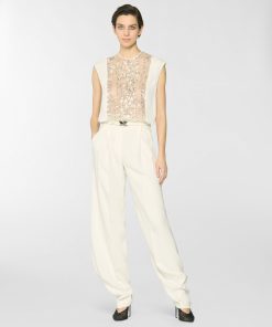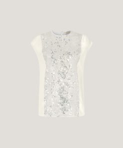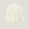 This oversized tulle shirt features a three-dimensional wave embroidery and is defined by long sleeves with dropped armholes, a classic collar, and a concealed button placket. A single mother-of-pearl button adorned with the Maison iconic orchid delicately accents the collar, adding a luminous, feminine touch to the essential design. The waist is gently defined and the straight-cut hem is finished with rounded edges and side slits, adding movement and lightness to the silhouette.