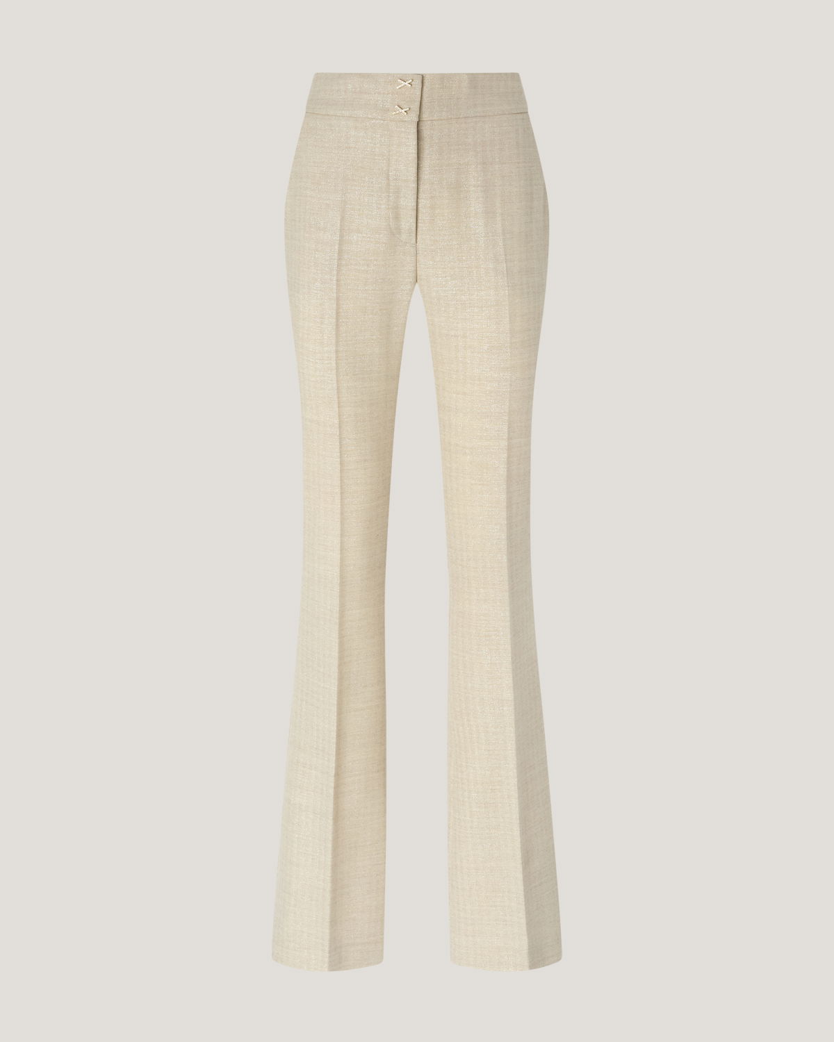 Tailored long trousers featuring a regular waist and side French pockets. The slightly flared hem embodies timeless elegance, enhanced by the wool-blend flannel with refined graphic detailing. A versatile piece that combines formal precision with understated sophistication.