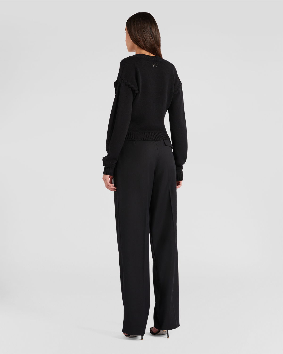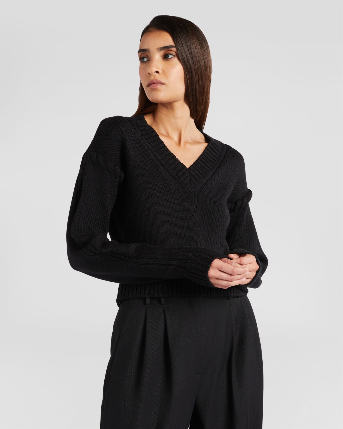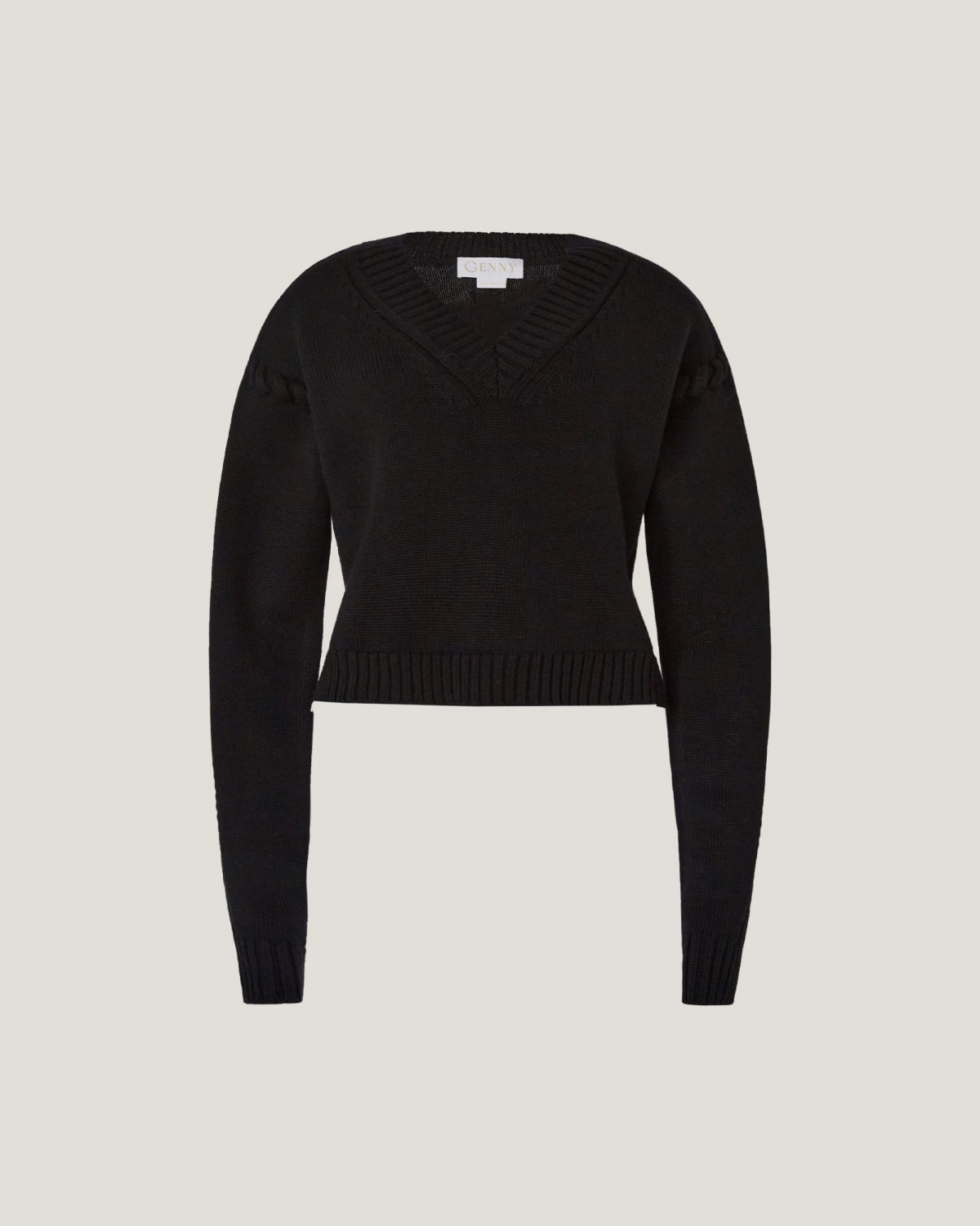 This sweater is a distinctive piece thanks to its soutage knitting of tube yarns on the armholes. The hems, cuffs, and details with ribbed knitting add refinement, while the boxy and straight fit at the bottom, along with the waist length, create a modern and fashionable look. Perfect for casual yet refined outfits.