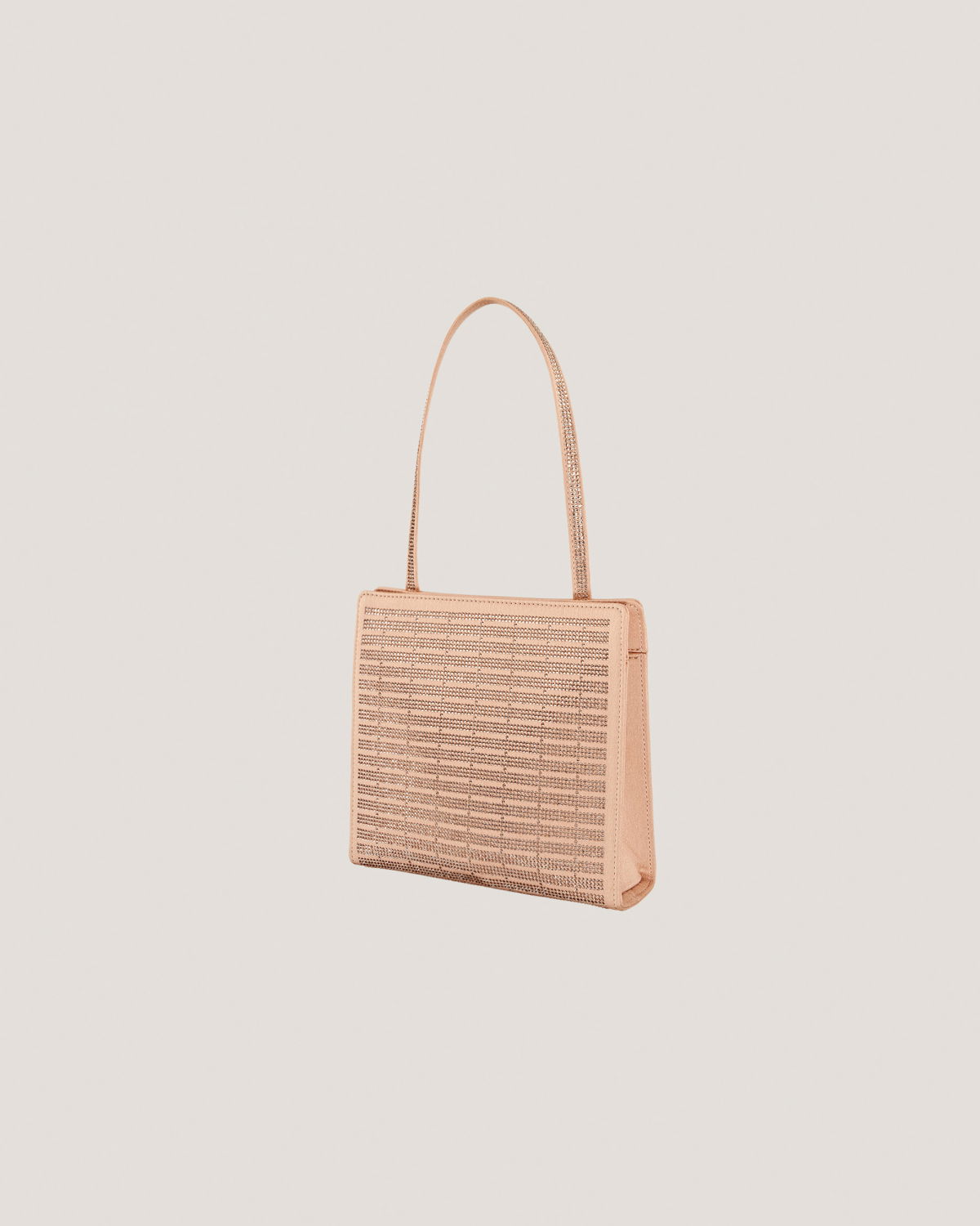 This bag stands out for its sophisticated and modern elegance, enhanced by sparkling rhinestone details that add a touch of glamour. The sleek design features a compact rectangular shape, perfect for carrying your essentials in style. The shoulder strap, crafted from leather with rhinestone accents, offers comfortable and chic wear, making it ideal for special evenings and occasions when you want to shine. Expertly crafted, this bag combines the elegance of satin with the brilliance of rhinestones, delivering a refined and distinctive look.