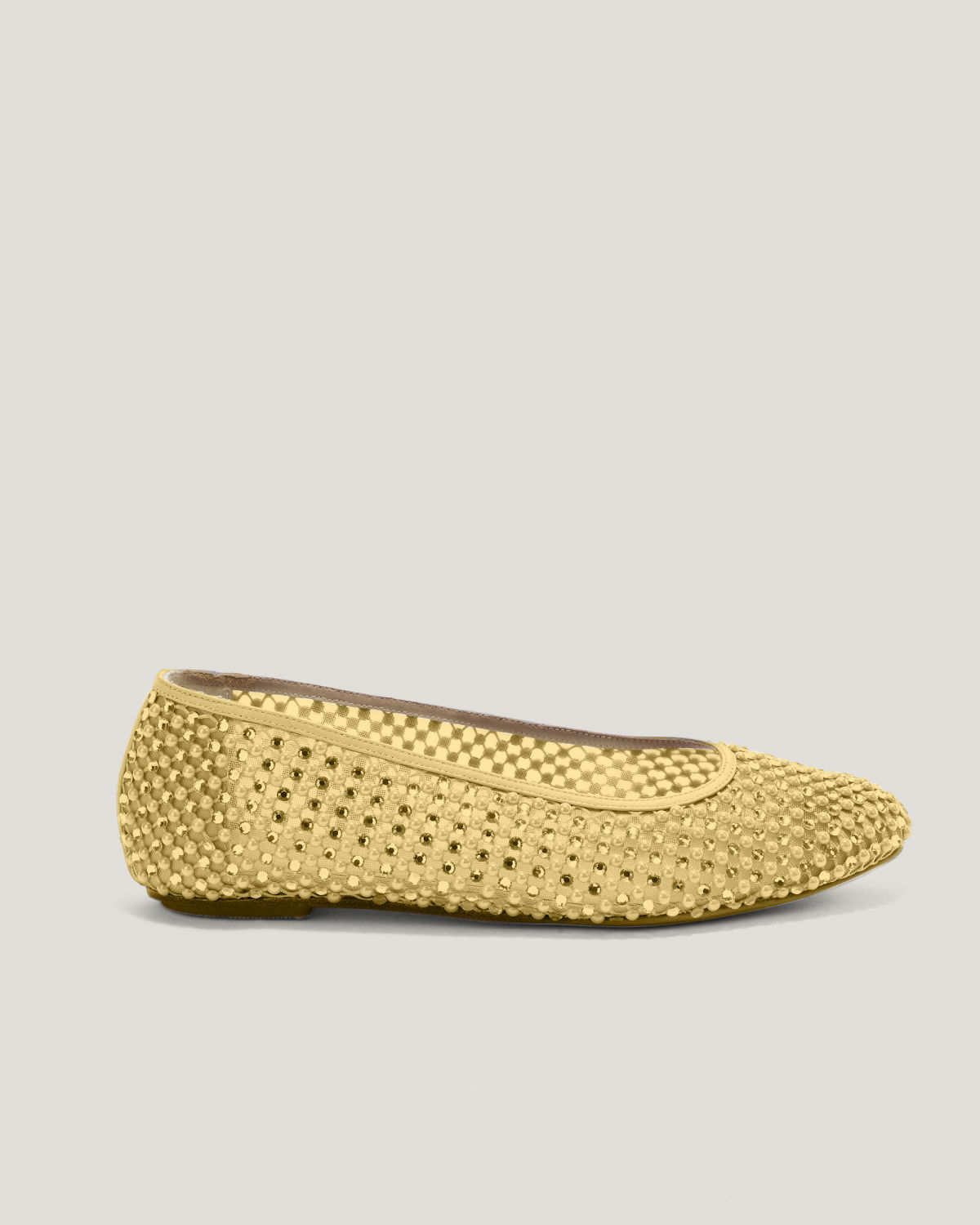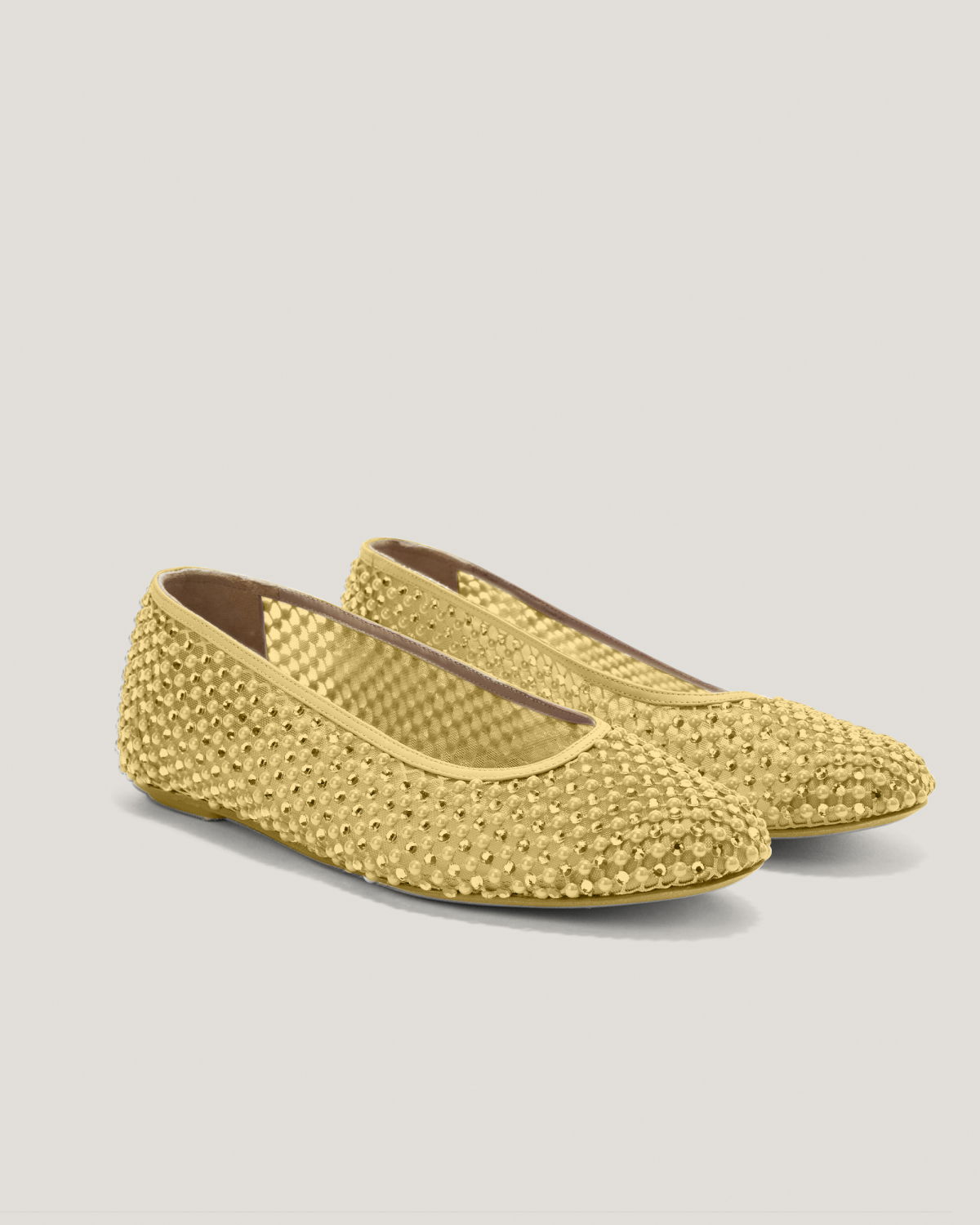 These ballet flats are crafted from transparent mesh, embellished with delicate microbeads and tonal rhinestones that add a sophisticated and elegant sparkle. The combination of lightweight materials and exquisite details makes these shoes perfect for adding a touch of glamour to any occasion while ensuring maximum comfort. The transparent upper is embellished with meticulously applied rhinestones, while the leather insole ensures all-day comfort. The pink tone adds a romantic and contemporary flair, making these flats the perfect accessory for any outfit.