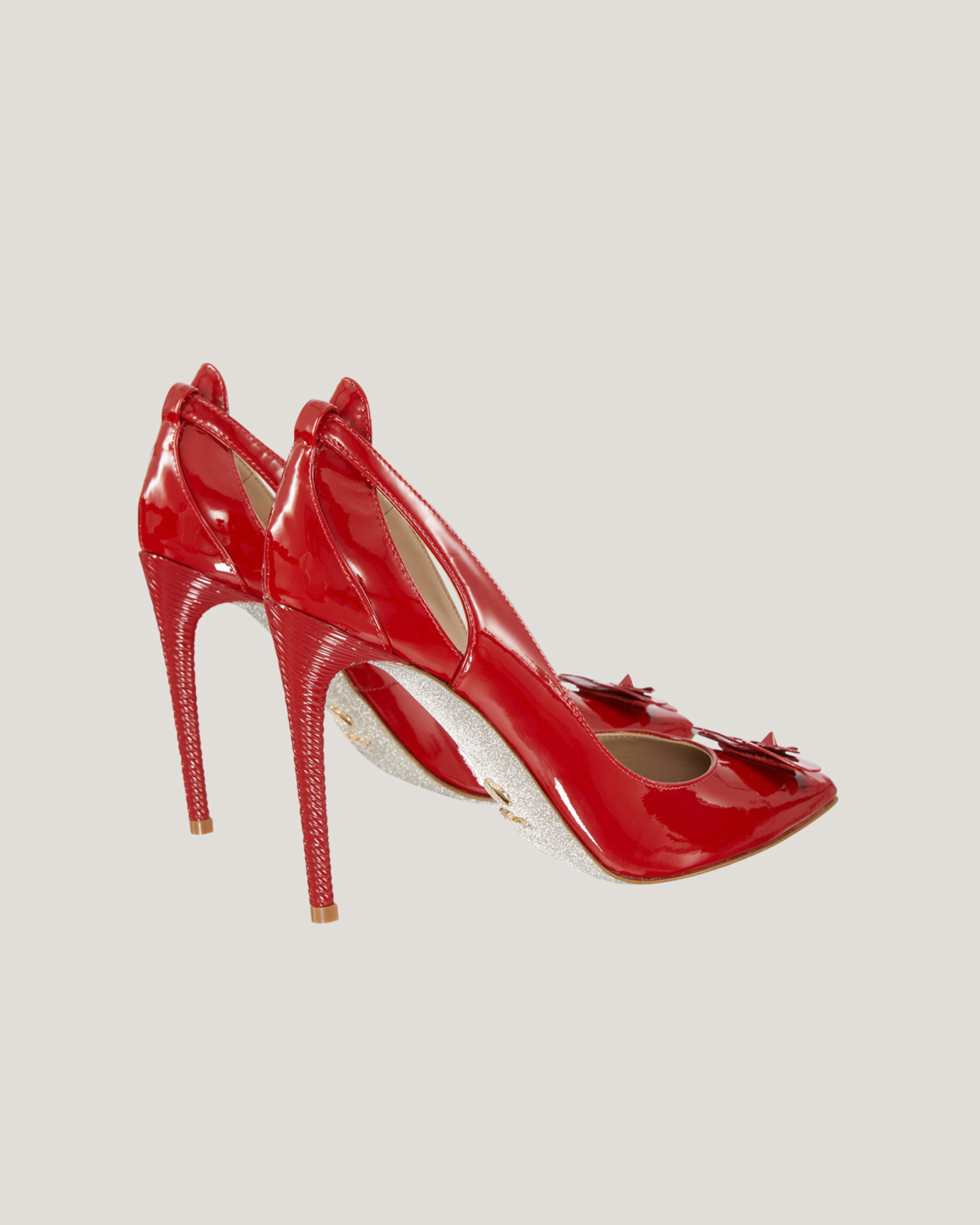 The 10.5 cm rococo heel lengthens the figure. The three-dimensional orchid decoration with rhinestone application on the front adds a touch of light and preciousness. The fabric is 100% made of bovine leather, giving it a bright and elegant look.