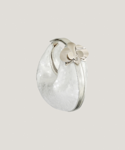 The Fortune bag in satin blends smooth curves with a luminous, refined finish. Its compact silhouette is adorned with a golden metal orchid, an iconic detail of the maison. Equipped with a removable 105 cm satin shoulder strap, it offers styling versatility: carried by hand or worn over the shoulder with effortless grace. Ideal for evening looks and special occasions where brightness makes the difference.