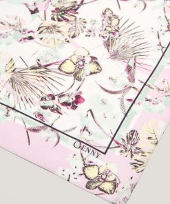 Elegant scarf crafted from pure silk, featuring a Jungle Flower print with natural and floral motifs. The soft and fluid texture of the fabric provides a delicate drape, perfect for enhancing any outfit with a touch of femininity and elegance. The tapered ends give it a modern and versatile look, ideal for wearing around the neck or tied to a bag for a chic and sophisticated detail.
