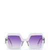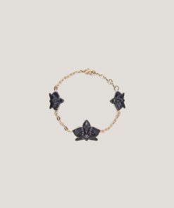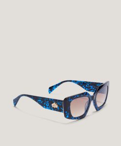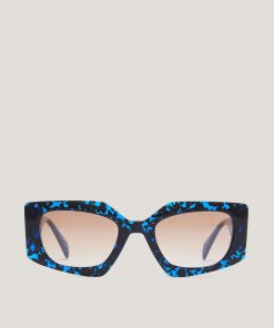 These square sunglasses, made with a black and blue tortoiseshell frame and golden metal details featuring an orchid, a symbol of the Maison. They boast a modern design with elegant lines. The gradient lenses add a touch of originality.