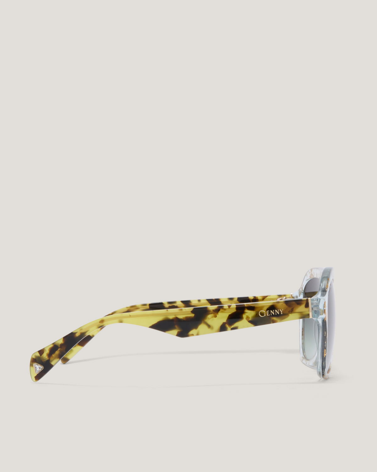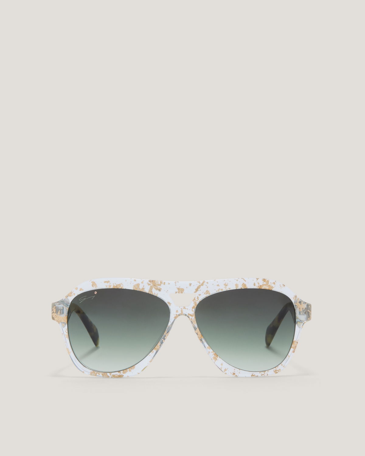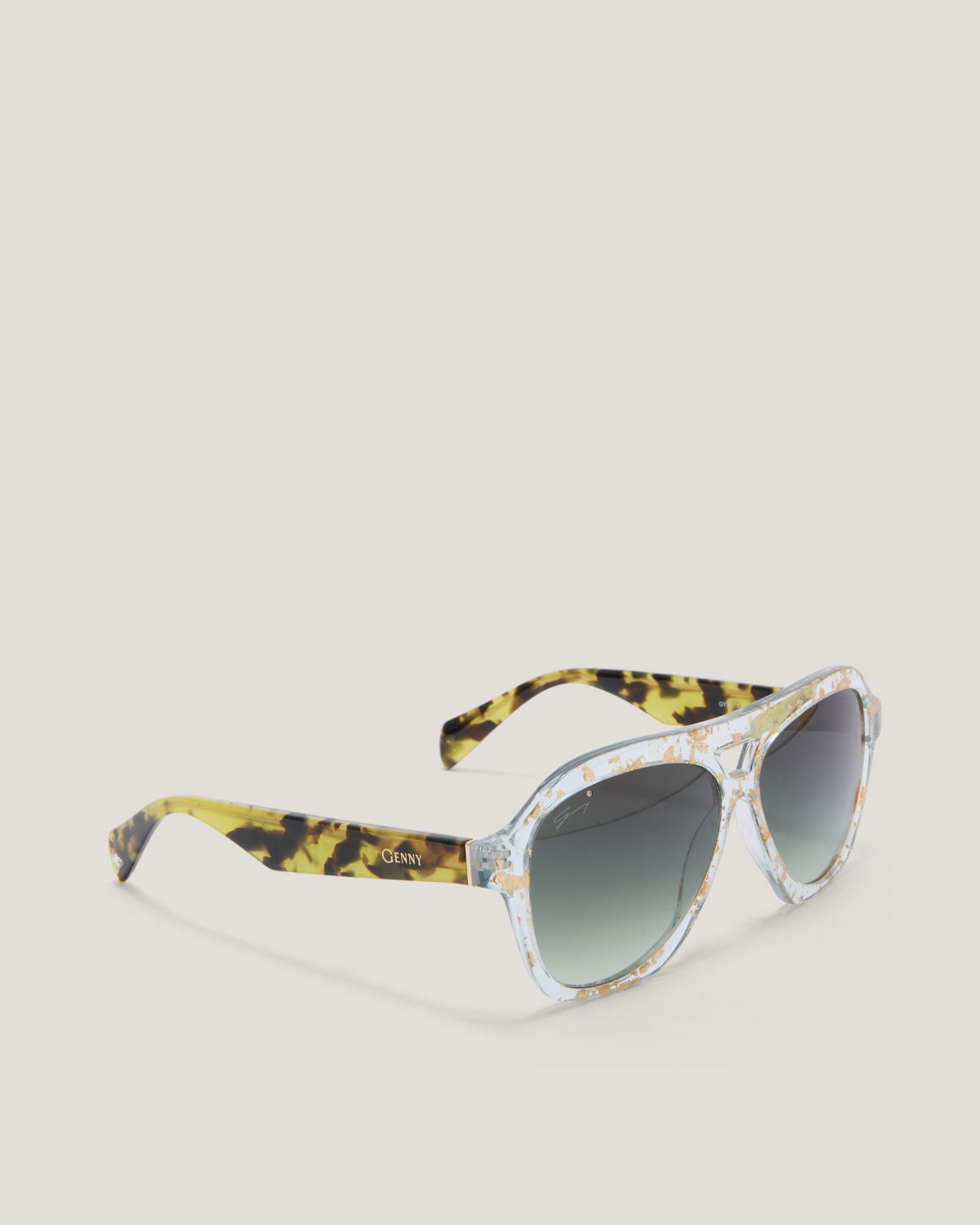 With a transparent frame enriched with tortoiseshell effect details, these sunglasses offer a unique design. The green gradient lenses create a fresh and contemporary look, perfect for those who seek originality and style in every detail.