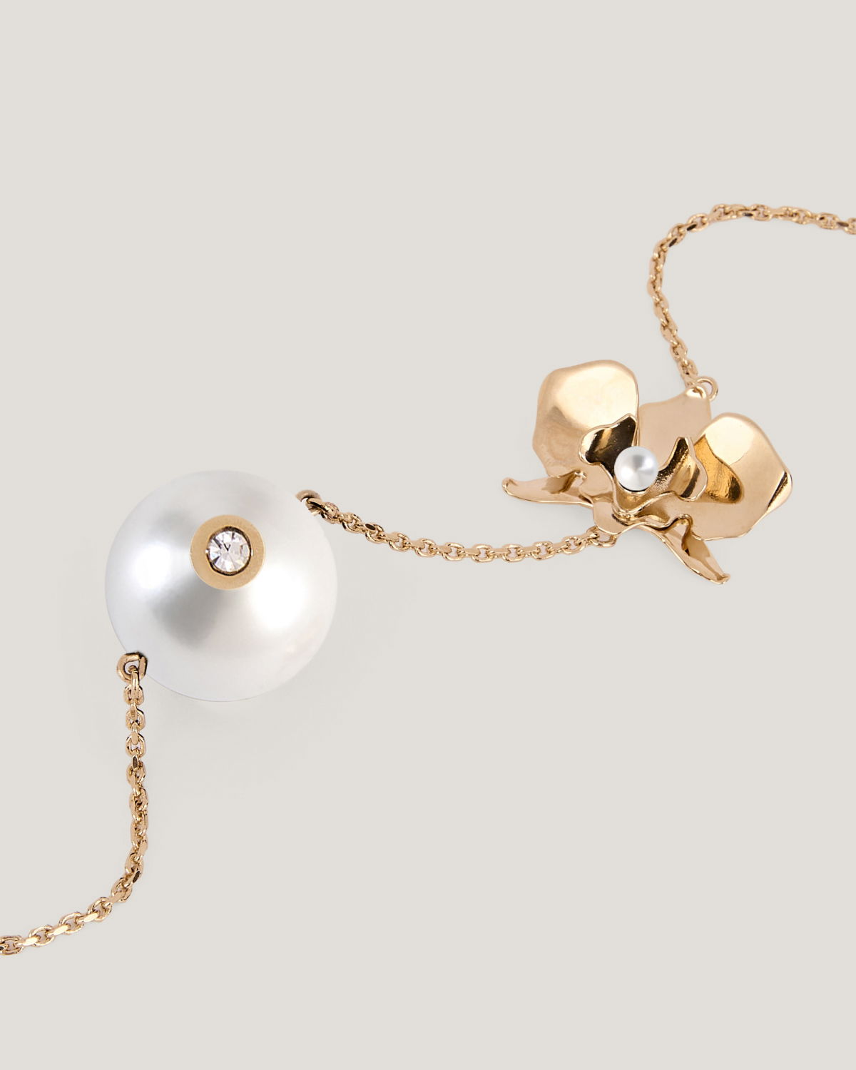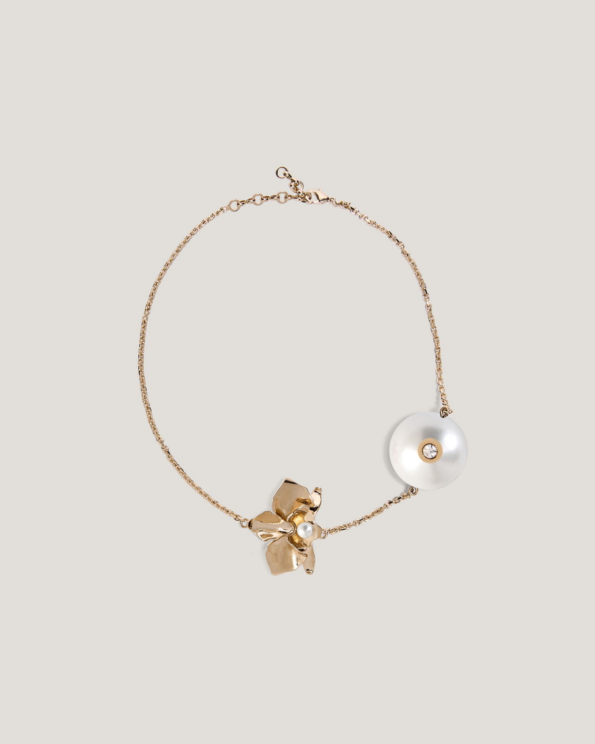 A necklace with a modern and sophisticated design, featuring an elegant black spherical pendant and shiny golden details that draw attention. The contrast between the deep black pendant and the warmth of gold creates a perfect balance of style and elegance. Ideal for enhancing evening gowns or adding a distinctive touch to everyday looks.